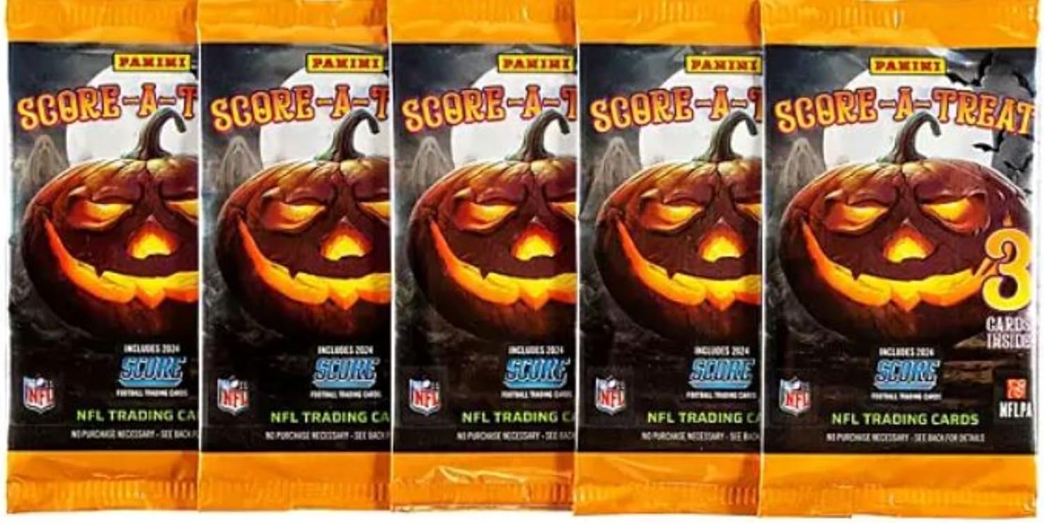 Unearth the Frightfully Fun Collection Introducing the all-new 2024 Score-A-Treat series from the revered Score Football brand. This exclusive collection is a perfect sweet treat for trick-or-treaters or a delightful addition to your own collection. 75-pack collection features a thrilling repertoire of NFL stars and rising rookies. Each three-card pack is filled with tales of gridiron greatness and chilling artwork that sends delightful shivers down the spine. This bewitching bundle is sure to captivate fans of all ages, but it’s not for the faint of heart. Perfect for Veteran Hobbyists and Newcomers Whether you’re a daring, veteran hobbyist or a wide-eyed newcomer, only the bravest souls have what it takes to dig up each creepy collector’s card. The 2024 Score-A-Treat Football is a treasure trove of riches ripe for reaping. It features a 349-card set that includes 300 Base cards and 49 Rising Stars cards. Each card is adorned in a vibrant Pumpkin, Bats or Trick or Treat parallel, just waiting to be unwrapped. Spooky Surprises and Enchanting Magic But beware! When the allure of spooky surprises intertwines with the enchanting magic of sports and Panini’s legendary brands, the fun may never end. The 2024 Score-A-Treat series is more than just a collection of trading cards. It’s a thrilling journey into the world of NFL stars and rookies, wrapped in the enchanting magic of Halloween. Get ready to unearth the frightfully fun collection!