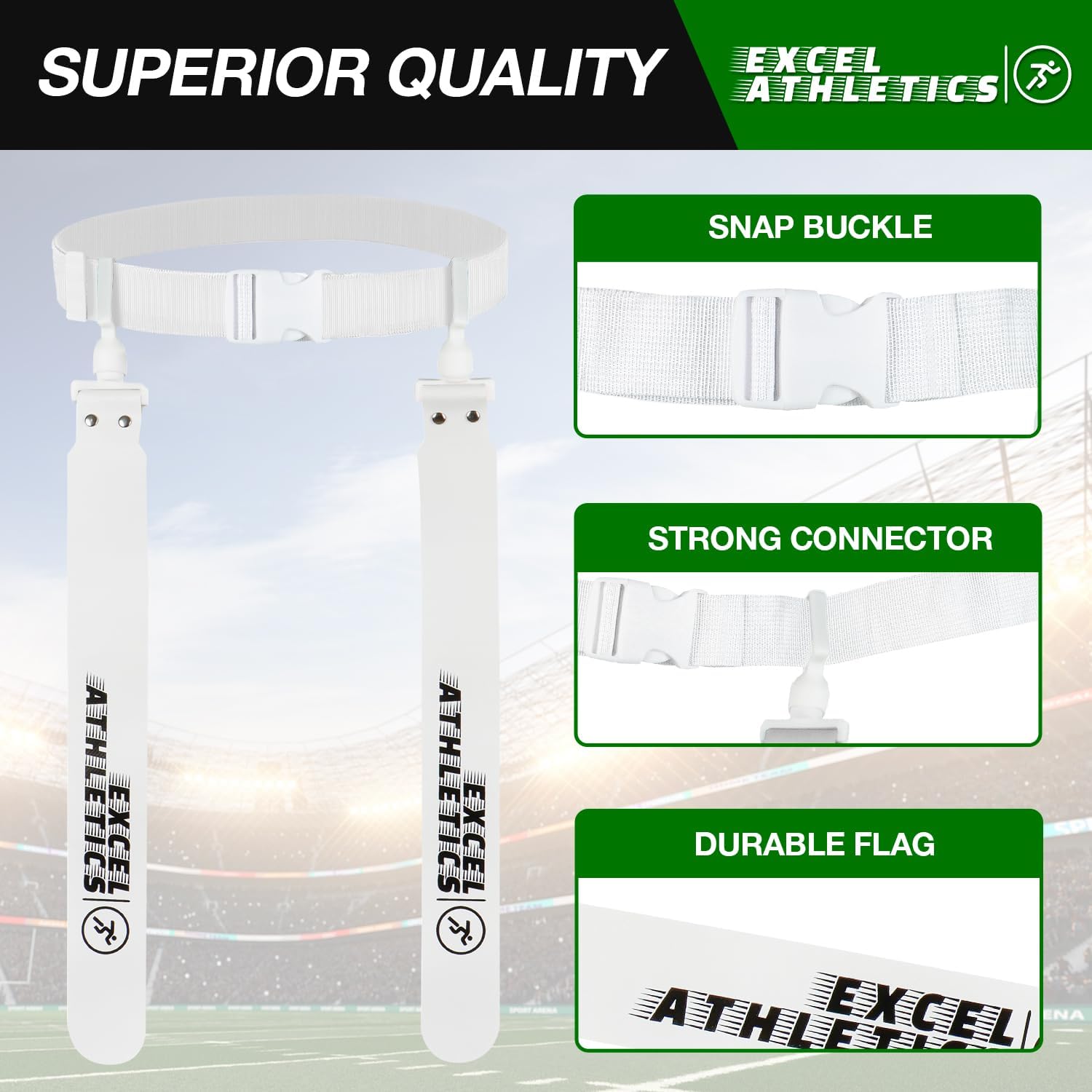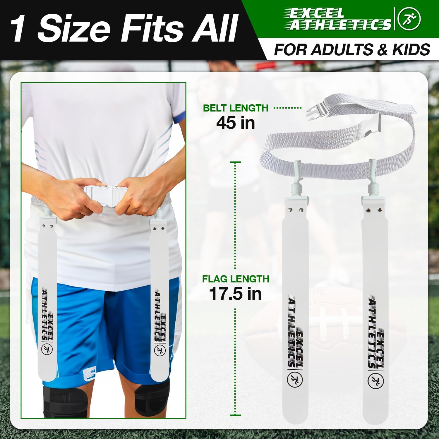 Introducing Excel Athletics flag football belts, the ultimate accessory for any football enthusiast! Made with high-quality materials and packed with features, these belts are the perfect addition to your game. Whether you’re an adult, teen, or youth, our belts are designed to fit all sizes and ages. They’re designed to be used by adults, teens, and youth, making them versatile and practical accessories for any team.