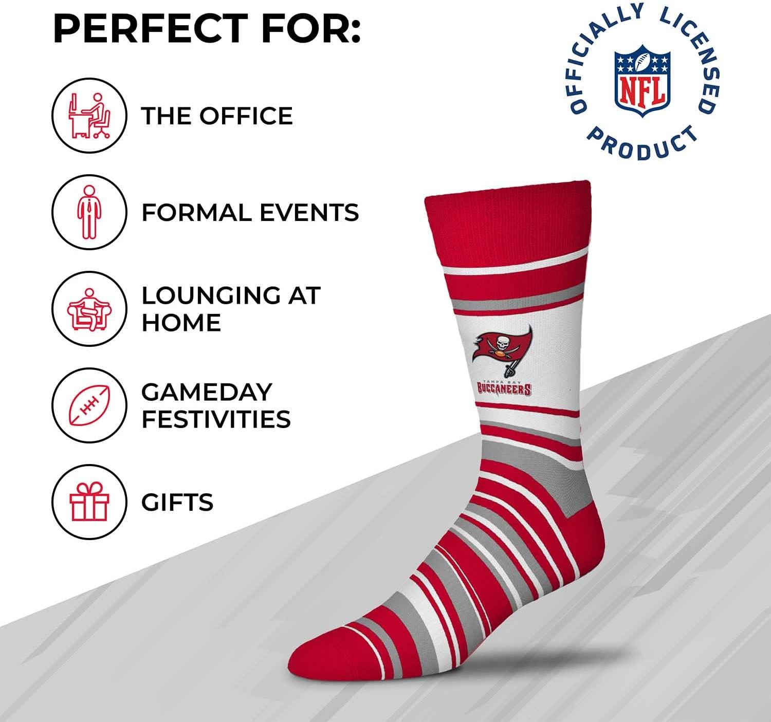 These striped dress socks make great gifts for all ages, perfect father’s day gift, birthday gift, or holiday stocking stuffers. The officially-licensed team logo, colors, and graphics make these socks the socks women and men will love forever. Socks are comfy and great for wearing with anything from street shoes to your favorite slippers; perfect for a Christmas stocking stuffer because as any true fan knows, these gifts never go out of style.
