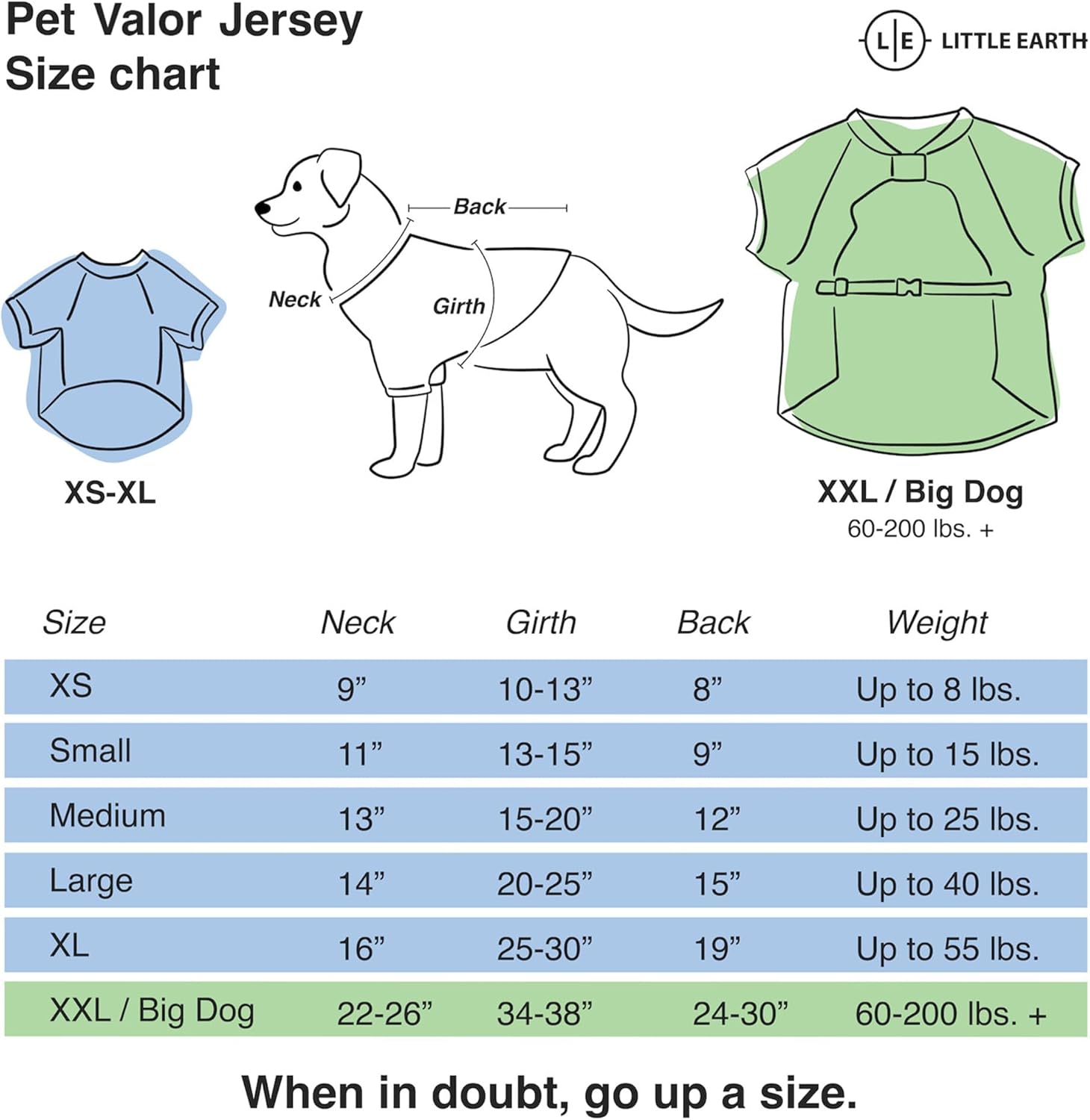 Introducing the Valor Stretch Pet Jersey from Littlearth, a must-have accessory that not only elevates your pet’s style but also showcases their unique personality with flair. Crafted meticulously from high-quality 100% polyester military green dazzle fabric, this jersey is as durable as it is eye-catching. Designed with your pet’s comfort in mind, the Valor Stretch Pet Jersey features stretch panels on each side, ensuring a snug and comfortable fit for furry companions of all shapes and sizes. Whether your pet is a petite pup or a majestic Big Dog, rest assured that there’s a size available to accommodate them. Simply consult our size chart for the perfect fit, and if in doubt, opt for a larger size to guarantee maximum comfort. Adding to its charm, the back of the jersey proudly displays the team logo and name, instantly showcasing your pet’s allegiance and spirit. Meanwhile, the sleeves boast playful paw prints and K-9 search and rescue prints, adding character and charm to this already stylish ensemble. For added convenience, the Valor Stretch Pet Jersey comes conveniently packaged on a header hanger card, allowing for effortless display or swift storage at home. If you’re hanging it in your closet, this packaging ensures easy accessibility whenever your furry friend is ready to strut their stuff. Elevate your pet’s fashion game and let their moxie shine with the Valor Stretch Pet Jersey from Littlearth.