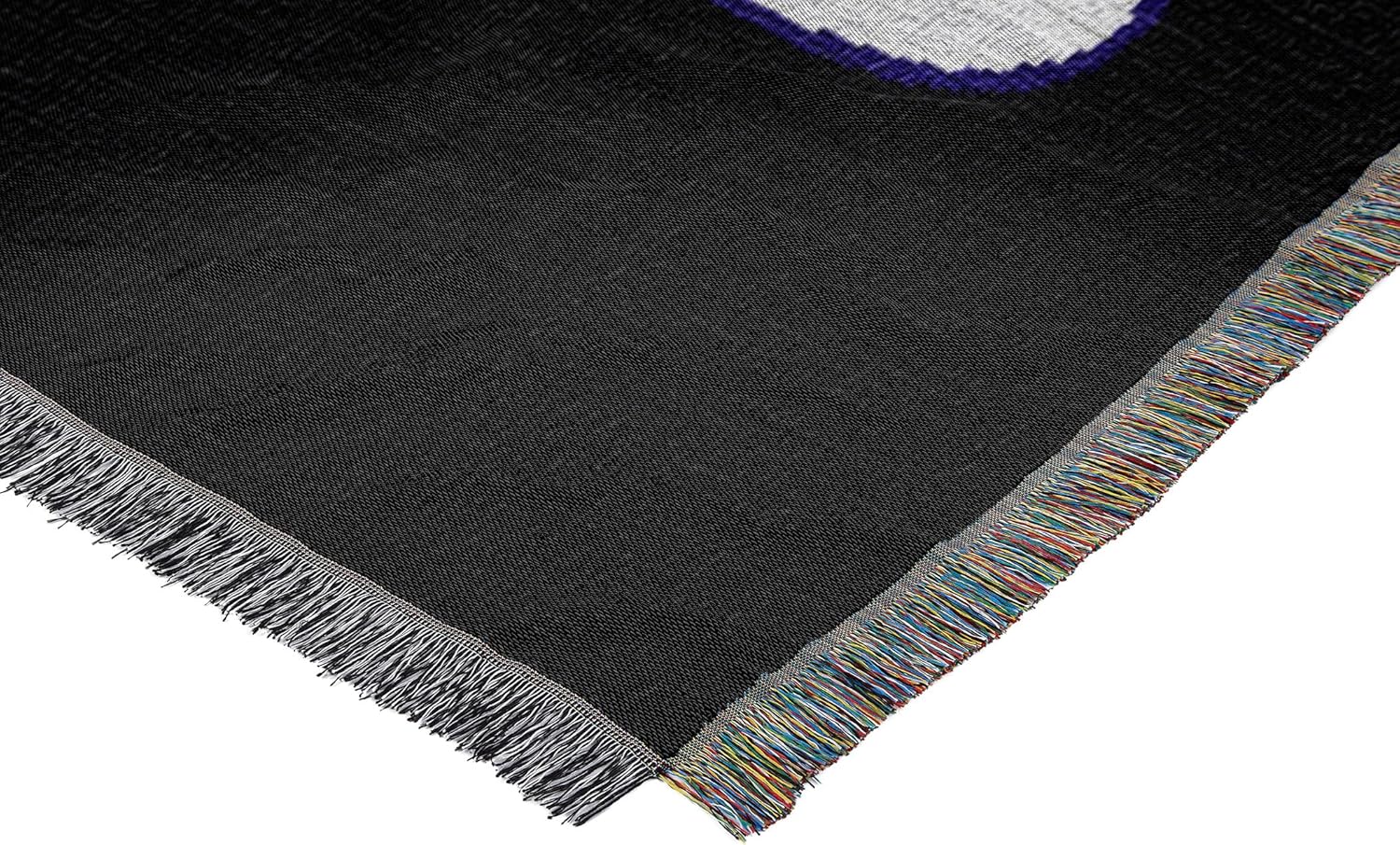 Detailed, woven throw blanket; decorative fringes around all edges; made in America